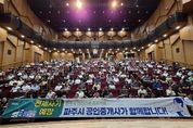 [ 타임즈 - 김시창 기자 ] 파주시는 지난 3일 운정행복센터 대공연장에서 관내 개업(소속) 공인중개사 347명을 대상으로 ‘2025년 공인중개사 집합 연수교육’을 실시했다. 이번 교육은 부동산 중개업 종사자의 전문성을 높이고 시민의 주거 안전을 강화하기 위해 마련됐다. 교육은 10시부터 17시까지 진행됐으며, 정삼교 한국공인중개사협회 전문강사와 서기호 세무사가 강사로 참여해 ▲부동산 중개 관련 법령 ▲부동산 세제 실무 ▲부동산 중개 실무 등을 주제로 강의했다. 특히 올해 교육에는 최근 사회적 문제로 부각된 전세사기 피해 예방을 위한 ‘파주시 안전 전세 프로젝트’ 강의가 포함돼, 전세사기 주요 유형과 대응 사례, 피해 예방 방법 등 실질적인 정보가 제공됐다. 교육에 참여한 한 공인중개사는 “이번 교육을 통해 부동산 거래 현장에서 시민들에게 더욱 안전하고 신뢰할 수 있는 서비스를 제공할 수 있도록 실무 역량을 키울 수 있었다”라고 말했다. 최병갑 파주시 부시장은 “이번 연수교육을 통해 공인중개사들의 전문성과 직업윤리 의식이 한층 강화되기를 기대한다”라며 “앞으로도 지속적인 교육과 지원을