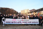 [ 타임즈 - 김시창 기자 ] 의정부시의회는 지난 1일 병오년 새해를 맞아 지역 주민들과 함께 걸으며 희망찬 2026년을 시작할 수 있도록 ‘해맞이 산책, 하천길 따라 새빛정원까지’ 신년 해맞이 행사에 참석했다. 이번 행사는 ▲호원 생활체조광장에서 출발해 ▲신의교~신곡교 중간지점 벽천분수 ▲동오역 생활체조광장 ▲경기도청 북부청사역 인근 벽천분수를 거쳐 ▲신곡새빛정원까지 이어지는 릴레이 산책 코스로 진행됐다. 해맞이 행사에는 시민들과 함께했으며, 15개 동 통장협의회가 행사 준비와 운영에 참여해 중랑천, 부용천 산책로를 걸으며 새해에도 시민들과의 공동체 의식을 함양하고자 마련됐다. 김연균 의장을 비롯한 권안나 부의장과 의정부시장, 의정부시통장협의회 등이 참석했다. 행사에 참석한 의원들은 “희망과 도약을 상징하는 붉은 말의 해를 맞아 시민들과 첫 해맞이를 함께하게 되어 더없이 기쁘다며” “올 한 해 더욱 시민들의 목소리에 귀 기울이고 함께 공감·소통하며, 의정부시의 발전을 이끄는 의정부시의회가 되도록 노력하겠다”고 전했다.