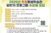 [ 타임즈 - 김시창 기자 ] 천안시 두정평생학습관은 오는 12일부터 ‘2026년 상반기 평생학습 프로그램’ 수강생 535명을 선착순 모집한다고 2일 밝혔다. 이번 상반기 프로그램은 시민들의 개인 역량 강화와 인생 재설계를 돕기 위해 기획됐으며, 오는 3월 4일부터 6월 30일까지 운영된다. 교육 과정은 총 5개 분야 34개 강좌로 구성됐다. 주요 내용은 △드론 등 미래 기술을 다루는 ‘디지털로 미래로(자율비행과 현장실습)’ △중장년을 위한 ‘신(信)인생설계(전문 컨설팅)’ △미디어 기기 활용법을 익히는 ‘디지털스마트교육’ △예술적 감각을 키우는 ‘문화·예술공감토크’ △다양한 주제의 ‘특별강좌(원데이클래스)’ 등이다. 수강 신청은 ‘천안시 평생학습포털’ 누리집을 통해 가능하며, 모든 강좌는 선착순으로 마감될 예정이다. 자세한 사항은 천안시 두정평생학습관팀으로 문의하면 된다. 유재영 교육청소년과장은 “청년부터 중장년까지 많은 시민이 참여해 배움의 즐거움을 느끼고 개인의 성장을 이끄는 기회가 되길 바란다”고 말했다.