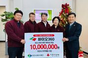 [ 타임즈 - 김시창 기자 ] (재)천안시복지재단은 18일 연말을 맞아 ㈜바이오360이 후원금 1,000만 원을 기탁했다고 밝혔다. 바이오360은 건강기능식품 연구 및 개발 전문 기업으로, ESG 경영과 사회공헌 활동을 통해 지역과 함께 성장하는 기업으로 자리매김하고 있으며, 지역사회와 상생하기 위해 재단에 첫 나눔을 실천했다. 김병학 바이오360 대표는 “따뜻한 나눔이 필요한 시기에 지역사회와 함께 할 수 있어 뜻깊게 생각한다”며 “앞으로도 지역의 어려움을 함께 살피며 지속적인 사회공헌 활동을 이어가 책임있는 기업의 역할을 다할 것”이라고 말했다. 이운형 천안시복지재단 이사장은 “체감 온도가 더 차가워지는 연말에 따뜻한 손길을 전해주셔서 감사드린다”며 “소중한 후원금은 경제적 어려움으로 도움이 필요한 취약계층의 생활 안정과 복지 향상을 위해 사용할 것”이라고 말했다.
