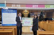 [ 타임즈 - 김시창 기자 ] 의정부시 자금동주민센터는 12월 24일 계성교회가 어려운 이웃을 위한 성금 67만6천 원을 기탁하며 ‘100일간 사랑릴레이 배턴 잇기’에 동참했다고 밝혔다. 계성교회는 매년 어려운 이웃들을 위한 기부 활동에 앞장서며 이웃사랑을 실천하고 있다. 이번에 전달된 성금은 경기사회복지공동모금회를 통해 관내 도움이 필요한 이웃들을 위해 쓰일 예정이다. 신진선 담임목사는 “어려운 시기에 성도들이 한마음으로 뜻을 모아 십시일반 정성을 모았다”며 “앞으로도 어려운 이웃들과 함께하며 나눔과 봉사를 실천하겠다”고 전했다. 유진환 동장은 “해마다 따뜻한 나눔을 실천해 주시는 계성교회에 진심으로 감사드린다”며 “기탁해 주신 성금은 관내 도움이 필요한 이웃들에게 실질적인 도움이 될 수 있도록 최선을 다하겠다”고 말했다.