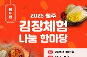[ 타임즈 - 김시창 기자 ] (사)원주시농촌체험휴양마을협의회가 주관하는 2025년 제4회 김장체험·나눔 한마당 행사가 오는 11월 1일, 호저면 섬강매향골체험휴양마을에서 개최된다. 올해로 4회째를 맞은 이번 행사는 각 가정의 김장비용 부담을 덜고, 우리 지역에서 갓 수확한 신선한 재료로 건강한 김치를 직접 담그는 특별한 경험을 제공하기 위해 마련됐다. 참가비는 가족당 85,000원이다. 총 11㎏의 김장김치를 담그며, 그중 1㎏은 지역 내 어려운 이웃에 기부해 나눔의 의미를 더할 예정이다. 협의회 관계자는 “깊어지는 가을, 온 가족이 함께 김치를 만들며 즐거운 추억을 쌓고 우리 주변의 이웃과 따뜻한 마음을 나누는 뜻깊은 시간이 되길 바란다”라며, “시민 여러분의 많은 관심과 참여를 부탁드린다”라고 말했다.
