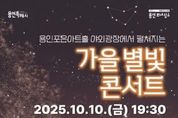 [ 타임즈 - 김시창 기자 ] 용인문화재단은 오는 10월 10일 오후 7시 30분, 새롭게 단장한 용인포은아트홀 야외광장에서 ‘가을 별빛 콘서트’를 개최한다. 이번 공연은 가을밤의 정취 속에서 시민들에게 특별한 추억을 선사하고, 용인의 대표 광장형 축제를 알리기 위해 마련됐다. ‘가을 별빛 콘서트’에는 가수 거미, 유리상자 이세준, 힙합 아티스트 행주·마린·블랙나인, 그리고 소프라노 정나리가 출연해 대중음악·클래식·힙합을 아우르는 다채로운 무대를 선보일 예정이다. 이번 공연은 무료로 진행되며, 사전 댓글 이벤트를 통한 예약석(현재 마감)과 공연 당일 현장 선착순 입장석으로 운영된다. 현장 참여자는 오후 5시부터 대기 후 오후 6시부터 선착순 입장할 수 있으며, 돗자리석과 계단석 등 다양한 방식으로 자유롭게 관람할 수 있다. 특히 이번 ‘가을 별빛 콘서트’는 시민 참여형 현장 이벤트도 마련됐다. 입장객 1,800명에게는 별 모양 무드등이 기념품으로 증정되며, 공연 전에는 중계 카메라 이벤트를 통해 용인포은아트홀 공연 티켓이 제공된다. 본 공연에 앞서 오후 4시부터 예술교육 매개자 ‘아트러너’가 운영하는 문화예술