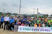 [ 타임즈 - 김시창 기자 ] 평택시 청북읍 행정복지센터는 지난 26일 민족 최대 명절 추석을 앞두고 청북공설공원묘지 일대에서 민관이 함께한 대청소 활동을 펼쳤다. 이날 이장협의회와 새마을지도자회, 새마을부녀회 등 3개 단체와 청북읍 행정복지센터 직원 등 50여 명이 참여해 묘지 주변 도로와 공용부지를 중심으로 잡초 제거, 쓰레기 수거 등 청소 취약 구간을 집중 정비하고, 무단으로 버려진 폐기물을 말끔히 수거하는 등 쾌적한 성묘 환경 조성에 힘썼다. 참여 단체 대표들은 “우리 마을 환경은 우리가 지킨다는 마음으로 앞으로도 환경 정화 활동에 적극 동참하겠다”라고 입을 모았다. 이철은 청북읍장은 “추석을 맞아 깨끗한 마을 만들기를 위해 자발적으로 동참하신 모든 분께 깊이 감사드리며, 앞으로도 정기적인 환경 정비 활동과 주민 참여 확대를 통해 쾌적하고 품격 있는 청북읍을 만들어 가겠다”라고 말했다.
