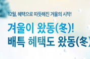 [ 타임즈 - 김시창 기자 ] 경기도와 경기도주식회사가 공동 운영하는 경기도 공공배달앱 배달특급이 겨울을 맞아 12월 한 달간 ‘겨울이왔동(冬)’ 소비자 할인 프로모션을 진행한다. ‘겨울이왔동(冬)’ 소비자 할인 이벤트는 ‘통 큰 세일’ 프로모션 종료 등으로 아쉬움이 남는 소비자들의 편익을 증대하기 위해 마련했다. 배달 특급 전체 회원, 전체 서비스 지역을 대상으로 1만2천원 주문에 사용가능한 3천원 할인 쿠폰을 예산 소진시까지 1일 1인 1회 지급한다. 한편 배달특급의 모든 이벤트는 해당 상단 배너 기능을 통해 확인 가능하며, 지역에 따라 할인 조건과 금액이 달라질 수 있어 사전 확인이 필요하다.