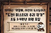 [ 타임즈 - 김시창 기자 ] 인천광역시교육청주안도서관은 오는 23일부터 초등 3~4학년 학생을 대상으로 ‘책열매’ 독서동아리 회원을 모집한다. ‘도전! 미스터리 추리 작가’를 주제로 한 이번 프로그램은 어린이가 독서지도 전문 강사의 지도 아래 꾸준한 독서 습관을 기르고, 또래 친구들과 책으로 소통하는 경험을 쌓을 수 있도록 마련했다. 프로그램은 매주 미스터리 주제의 다양한 책을 읽고 수수께끼 만들기, 탐정일지 쓰기, 같은 시작 다른 결론, 뒷이야기 쓰기 등의 활동을 하며, 학생들이 직접 추리 동화를 창작하는 과정으로 3월 12일부터 4월 23일까지 운영한다. 모집은 2월 23일 오전 10시부터 주안도서관 누리집에서 선착순 진행하며, 자세한 내용은 주안도서관 누리집을 확인하거나 어린이자료실로 문의하면 된다.