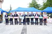 [ 타임즈 - 김시창 기자 ] 음성군은 최근 이상 기온으로 인한 농업 피해와 국내 경기침체로 위축된 농산물 소비 촉진을 위해 26일 국회 소통관 앞마당에서 음성군 대표 농산물 ‘햇사레 복숭아’ 특별 판촉 행사를 열었다고 밝혔다. 음성 햇사레 복숭아 판촉 행사는 임호선 국회의원실에서 주최하고 햇사레과일조합공동사업법인이 주관했으며, 수도권 소비자들에게 음성군 농산물의 우수성을 알리고 농가소득 증대를 위한 임 의원의 지역밀착형 의정활동의 일환으로 추진됐다. 이날 조병옥 음성군수를 비롯해 임호선 국회의원, 박종학 농협중앙회 감사위원장, 이명섭 농협중앙회 이사, 이용선 농협중앙회 충북총괄본부장, 고윤종 농협중앙회 음성군지부장, 정지태 감곡농협조합장, 박노대 음성농협조합장, 한창수 생극농협조합장, 김기원 햇사레과일조합공동사업법인 대표 등 유관기관 관계자 및 시민들이 참석했다. 이번 행사에서는 햇사레 복숭아의 당도와 품질을 직접 알릴 수 있는 시식 이벤트와 음성군 농산물 공동브랜드인 ‘음성명작’의 홍보가 이뤄졌다. 특히 햇사레 복숭아를 현 시중가보다 20% 이상 저렴한 가격으로(3kg 2만5000원, 4kg 3