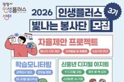 [ 타임즈 - 김시창 기자 ] 광명시 인생플러스센터가 ‘2026년 인생플러스 빛나는 봉사단’ 제3기 봉사자 40명을 2월 23일부터 3월 11일까지 모집한다. ‘인생플러스 빛나는 봉사단’은 40~64세 광명시 중장년이 지닌 지식과 역량을 평생학습 자원으로 확장해 지역공동체에 필요한 변화를 함께 만들어가는 ‘재능활용 학습실천’ 자원봉사 활동이다. 지난 1‧2기 활동에는 총 50명의 봉사자가 참여해 ▲아동 학습보조 및 책놀이 ▲1:1 디지털 코칭 ‘신중년 디지털 아지트’ ▲어르신 아로마 향기테라피 ▲중장년 드론 조종 체험 등 다양한 활동을 펼쳤다. 이들은 총 413회, 누적 1천358시간에 걸친 봉사활동으로 지역사회에 활력을 불어넣었다는 평가를 받았다. 이번 3기 모집 분야는 크게 현장지원형(10명)과 프로젝트형(30명)으로 나뉜다. 현장지원형은 센터 프로그램 운영과 행사 안내를 돕는 ‘인생플러스 서포터즈’와 교육강사 보조 및 모니터링 일지를 작성하는 ‘학습 모니터링’으로 운영한다. 프로젝트형은 ‘신중년 디지털 아지트(1:1 코칭)’, ‘초등학생 책 낭독놀이’를 비롯해 봉사자가 직접 프로그