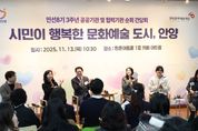[ 타임즈 - 김시창 기자 ] 안양시는 13일 오전 10시 30분 평촌아트홀 1층 카페 아트림에서 ‘시민이 행복한 문화예술 도시, 안양’을 주제로 (재)안양문화예술재단과 민선 8기 3주년 공공·협력기관 순회 간담회를 개최했다. 이번 간담회는 민선8기 3주년을 맞아 안양시 문화예술 정책의 주요 성과를 공유하고, 현장 예술인과 시민의 의견을 직접 청취하기 위해 마련됐다. 행사에는 안양 지역 예술인과 문화단체 관계자, 시민 등 120여 명이 참석해 안양의 문화예술 비전과 발전 방향에 대해 활발한 소통의 시간을 가졌다. 간담회에서는 ▲시민이 주인공이 되는 ‘안양춤축제’ ▲생활문화로 피어나는 ‘마을축제 지원사업’ ▲지역·청년예술인 창작활동 지원 ▲안양박물관과 공공예술프로젝트(APAP) 등 시민이 함께 만들어가는 다양한 문화예술 사례가 소개됐다. 안양춤축제는 안양만의 축제가 아니라 관광형 축제로 거듭나고 있다. 지난 9월 3일간 열린 축제에는 총 14만2,000여명이 참여했는데, 이 중 40%가 타 시도민으로 추산된다. 춤축제 기간 열린 유스클럽챔피언십의 한 고등학생 참가자는 “대회 분위기가 생각보다 훨씬 뜨거웠고 행복했