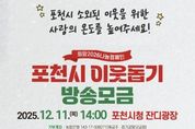[ 타임즈 - 김시창 기자 ] 포천시는 복지사각지대를 해소하고 안정적인 복지재원 마련을 위해 ‘행복을 더하는 기부, 기부로 바꾸는 포천’을 주제로 '희망2026 나눔 캠페인 포천시 이웃돕기 방송모금' 행사를 개최한다. 이웃돕기 방송모금은 다가오는 12월 11일 14시부터 15시 30분까지 포천시청 광장에서 진행되며, 목표 금액은 3억 원이다. 기부금은 전액 포천시의 취약계층을 위한 사업에 지원될 예정이다. 이번 행사는 경기북부 사랑의 열매와 LG헬로비전방송이 주관하고, 포천시, 희망포천추진위원회, 포천시지역사회보장협의체, 포천시종합사회복지관이 후원한다. 이번 모금은 기관, 단체, 기업체, 시민 등 모두가 참여할 수 있다. 정보무늬(QR코드)를 통한 기부, 계좌 입금(농협 143-17-006071 사회복지공동모금회)을 통한 기부는 물론 행사 당일 현장 모금함 기부도 가능하다.
