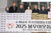 [ 타임즈 - 김시창 기자 ] 지난 4일, 하남시 가구산업협동조합(이사장 양귀술)이 연말을 맞아 지역 내 취약계층을 돕기 위해‘하남 사랑愛나눔’성품으로 라면 20개입 100박스, 백미 10㎏ 100포(총 485만원 상당)를 하남시에 기탁했다. 이날 기탁식에는 이현재 하남시장을 비롯하여 양귀술 이사장, 임철순 사무총장 등 회원 12명이 함께 참석했다. 하남시 가구산업협동조합은 70명의 조합원으로 구성된 하남시 유일의 가구조합으로서, 최근 진행한 사업의 수익금 중 일부를 지역사회에 환원하고자 성품을 마련했다고 전했다. 양귀술 이사장은 “우리 조합이 지역사회의 한 구성원으로 책임을 다하고자 이번 나눔을 준비했다”며, “앞으로도 지역과 함께 성장하는 나눔을 지속적으로 실천할 수 있도록 노력하겠다”라고 기탁 소감을 밝혔다. 하남시 관계자는 “지역사회를 위해 뜻깊은 나눔을 실천해준 하남시 가구산업협동조합에 감사드리며, 소중한 성품이 취약계층의 식생활 지원에 큰 힘이 될 것이다”라고 감사 인사를 전했다. 한편, 이번에 기탁된 성품은 하남시푸드뱅크를 통해 경제적 어려움을 겪는 어르신 등 취약계층에