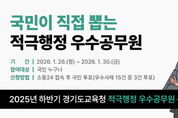 [ 타임즈 - 김시창 기자 ] 경기도교육청이 공공의 이익을 높인 적극행정 우수공무원 선정을 위해 2025년도 하반기 대국민 심사를 실시한다. 도교육청은 창의적이고 능동적인 행정을 펼친 각 기관의 추천 사례를 접수해 1차 예선심사에서 우수사례 15건을 선정했다. 이를 대상으로 1월 26일부터 30일까지 ‘소통24’누리집에서 국민이 참여하는 온라인 투표 방식의 대국민 심사를 진행한다. 참여자는 1인당 3건의 우수사례에 투표할 수 있다. 본선 진출자는 예선심사 점수 60%와 국민투표 결과 40%를 합산해 최종 결정된다. 선발된 공무원에게는 교육감 표창과 포상금, 특별승급의 인사상 가점부여 등 다양한 특전을 제공할 계획이다. 이번 선발은 단순한 성과 평가를 넘어 적극행정의 모범사례를 널리 알리고, 공직사회 전반에 적극행정 문화를 확산시키는 의미가 있다. 특히 국민이 직접 우수공무원을 선정함으로써 정책 수요자의 관점이 반영된다는 점에서 공정하고 투명한 심사 절차가 마련될 것으로 기대된다. 도교육청은 앞으로도 국민이 체감하는 변화를 만들어낸 공무원의 노력을 널리 알리고, 적극행정을 일