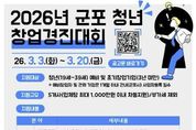 [ 타임즈 - 김시창 기자 ] 군포산업진흥원은 지역 내 유망 청년 창업가를 발굴하고 혁신 아이디어의 성공적인 사업화를 지원하기 위해 2026년 군포 청년 창업경진대회 지원사업 참가자를 2026년 3월 3일부터 3월 20일까지 모집한다고 밝혔다. 이번 사업은 창의적인 아이디어와 기술력을 보유한 청년 예비창업자 및 초기 창업기업을 대상으로 우수 창업 아이템을 발굴하고, 단계별 맞춤 지원을 통해 안정적인 시장 진입과 지속 가능한 성장을 돕기 위해 마련됐다. 특히 경진대회를 통해 선발된 우수팀에게는 최대 1천만 원의 사업화 지원금과 전문가 멘토링 등 실질적인 성장 지원 프로그램이 제공될 예정이다. 또한 향후 창업보육센터 입주 신청 시 우대 혜택을 부여해 후속 성장까지 연계 지원할 계획이다. 군포산업진흥원은 이번 사업을 통해 청년 창업 활성화 기반을 더욱 강화하고, 지역 내 창업 생태계 선순환 구조를 구축해 나간다는 방침이다. 아울러 우수 창업기업이 관내에 안정적으로 정착해 지속적으로 성장할 수 있도록 맞춤형 지원을 확대해 나갈 예정이다. 유병직 원장은 “청년 창업은 지역 경제의 미래 성장 동력”이라며,
