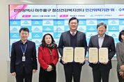 [ 타임즈 - 김시창 기자 ] 인천 미추홀구는 지난 8일 구청장실에서 재능대학교 산학협력단(단장 이주미)과 정신건강복지센터 위탁 운영 협약을 체결했다. 구는 기존 위수탁 기간이 오는 12월 31일부로 만료됨에 따라 지난 7월 공개모집을 진행했으며, 심의위원회 심사 등 관련 절차를 거쳐 재능대학교 산학협력단을 최종 수탁기관으로 선정했다. 이번 협약에 따라 재능대학교 산학협력단은 2026년 1월부터 2030년 12월까지 5년간 정신건강복지센터를 운영하게 된다. 산학협력단은 앞으로 중증 정신질환자 및 아동 청소년 정신건강증진사업, 지역 정신건강 위기 대응 사업, 통합정신건강증진사업, 자살예방사업 등 지역사회 기반의 통합 정신건강 서비스를 추진할 계획이다. 이영훈 구청장은 “정신건강은 지역 주민의 삶의 질과 바로 연결되는 중요한 분야”라며, “이번 협약을 통해 미추홀구가 보다 전문적이고 체계적인 정신건강 서비스를 제공할 수 있기를 기대한다.”라고 말했다.