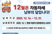 [ 타임즈 - 김시창 기자 ] 인천 서구는 2025년 12월 정기분 자동차세 15만 3천599건, 198억여 원을 부과하고 11일 고지서를 일괄 발송했다고 밝혔다. 자동차세는 차종에 따른 일정액이나 배기량에 cc당 세액을 곱해 산출하는 차량별 연세액을 기준으로 1년에 상·하반기로 나누어 2회(6월, 12월) 정기적으로 부과한다. 이번 12월 정기분 자동차세는 7월 1일부터 12월 31일까지 소유 기간에 대한 부과분으로 과세기준일(12월 1일) 현재 자동차 등록 원부상 서구에 등록된 차량(자동차, 이륜차, 기계장비) 소유자에게 부과된다. 자동차세 연세액을 미리 선납한 차량과 연세액이 10만 원 이하로 6월에 일괄 부과된 차량은 제외된다. 고지서는 우편으로 발송되며 전자고지 신청자는 전자우편 또는 모바일앱에서 확인할 수 있다. 납부 기간은 12월 16일부터 12월 31일까지다. 자동차세는 전국 금융기관 ATM/CD기, 위택스, 지로등 인터넷, 보이는 ARS를 통해 조회·납부가 가능하며 지방세입 계좌 및 가상계좌로 이체할 수 있다. 고지서를 받지 못했거나 분실했을 경우 전국 금융