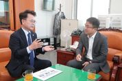 [ 타임즈 - 김시창 기자 ] 육동한 춘천시장이 21일 국회를 찾아 한병도 국회 예산결산특별위원회 위원장을 면담하고 내년도 국비 예산 증액과 주요 현안 반영 설득에 나섰다. 육동한 시장은 이날 한병도 국회 예산결산특별위원장을 만나 춘천지역의 주요 현안 사업의 추진 상황을 직접 설명하고 국회 차원의 지원을 요청했다. 육동한 시장은 앞서 지난 3일에도 예결특위 소속 의원들을 만나 주요 사업의 타당성을 설명했다. 국회 예산안 심사가 막바지에 접어든 가운데 춘천시는 이번 한병도 위원장과의 면담을 통해 기존 반영된 예산을 사수하는 한편 추가적으로 주요 사업의 국비를 지속 확보한다는 계획이다. 주요 건의 사업은 △연구개발특구 육성 96억 원 △소양8교 건설 설계비 35억 원 △2026 세계태권도품새선수권대회 지원 15억 원 △2026 춘천코리아오픈국제태권도대회 지원 3억 원 △춘천시 순환형 매립시설 정비 구축 용역비 10억 원 △디지털 랩온어칩 실용화 플랫폼 구축 23억 원 △중소형 CDMO 육성 항원 항체 소재뱅크 구축 23억 원 △동물대체시험 실증지원센터 구축 17억 원 △AI기반 당뇨병콩팥병 바이오마커 개발사업 42억 원 등 총