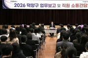 [ 타임즈 - 김시창 기자 ] 고양특례시는 지난 26일 덕양구청 대회의실에서 ‘2026년 덕양구 업무보고 및 직원 소통간담회’를 개최했다. 업무보고에는 이동환 고양시장과 주시운 덕양구청장을 비롯해 구청 13개 과·21개 동행정복지센터의 부서장, 8·9급 저연차 공무원 등 100여 명의 직원이 참석했다. 2026년 업무보고는 주시운 덕양구청장과 부서장의 보고를 통해 민선8기 덕양구 핵심 성과와 2026년 업무 추진 방향을 간략히 공유하고, 직원들과의 자유로운 토론 시간을 확대해 현장의 목소리를 청취하는 데 중점을 뒀다. 이날 부서별 업무보고와 관련해 이동환 시장은 ▲덕양구를 대표하는 창릉천 유채꽃·코스모스 축제의 성공적 개최를 위한 주관 부서와 행신2동 행정복지센터의 적극적인 협조 ▲지적재조사 사업 등 시민 불편 해소를 위한 주요 사업의 속도감 있는 추진을 당부했다. 특히 20~30대 직원들과 격의 없이 소통하는 자유토론 시간이 눈길을 끌었다. CES 2026에서 고양시에 도입하고 싶다고 생각한 기술 분야, 전 세계적인 주목을 받은 ‘고양콘’에 대한 궁금증 등 다양한 주제로 활발한 의견 교환이 이어졌다. 또한 고양시 결혼·출산가구 지원 정책에 관한 주제도 다뤄
